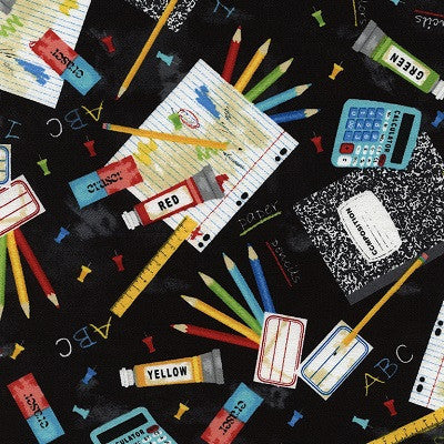 School Supplies Fabric Black Cotton 1/2 Mtr
