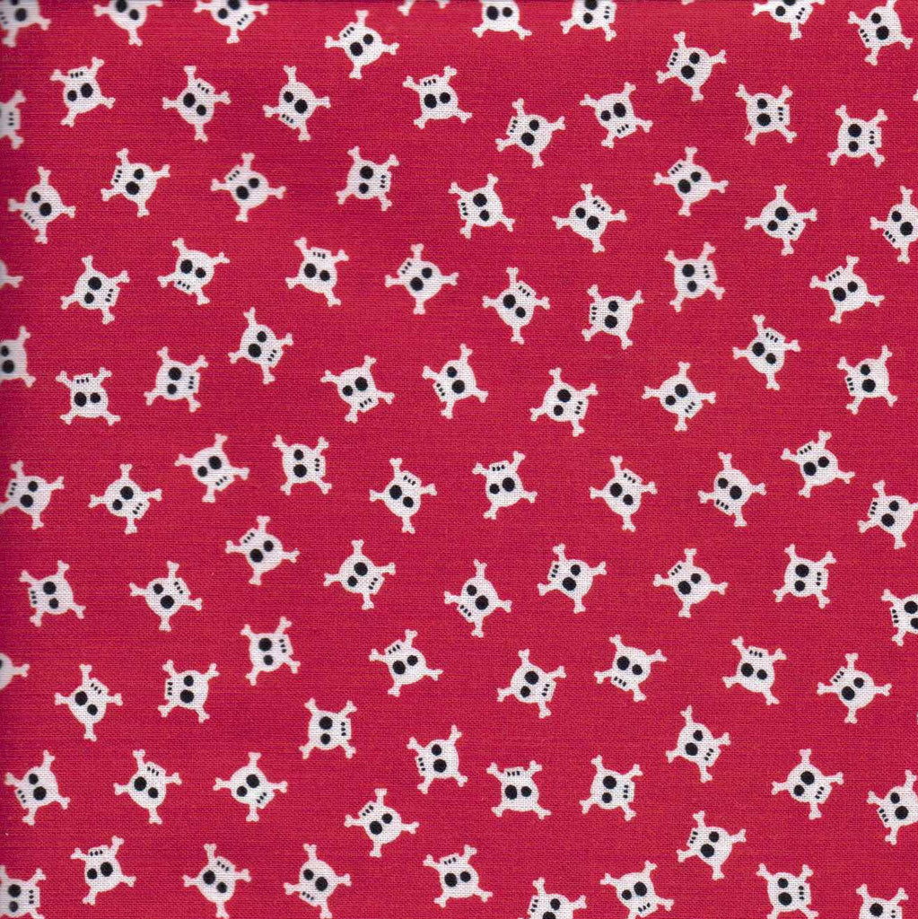 Skull and Cross Bones Pirates Fabric Red 1/2 Metre